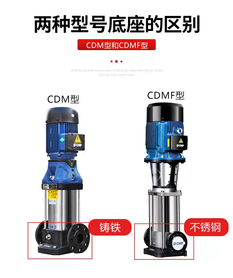 南方CDM/CDMF系列為參照歐洲標準最新自主研發的新一代、高效率非自吸立式多級離心泵。產品采用全新的工業設計,能效指標達到MEI≥0.7,具有節能、低噪、環保及機構緊湊、外觀美觀、重量輕、使用維護方便、可靠性高等特點。