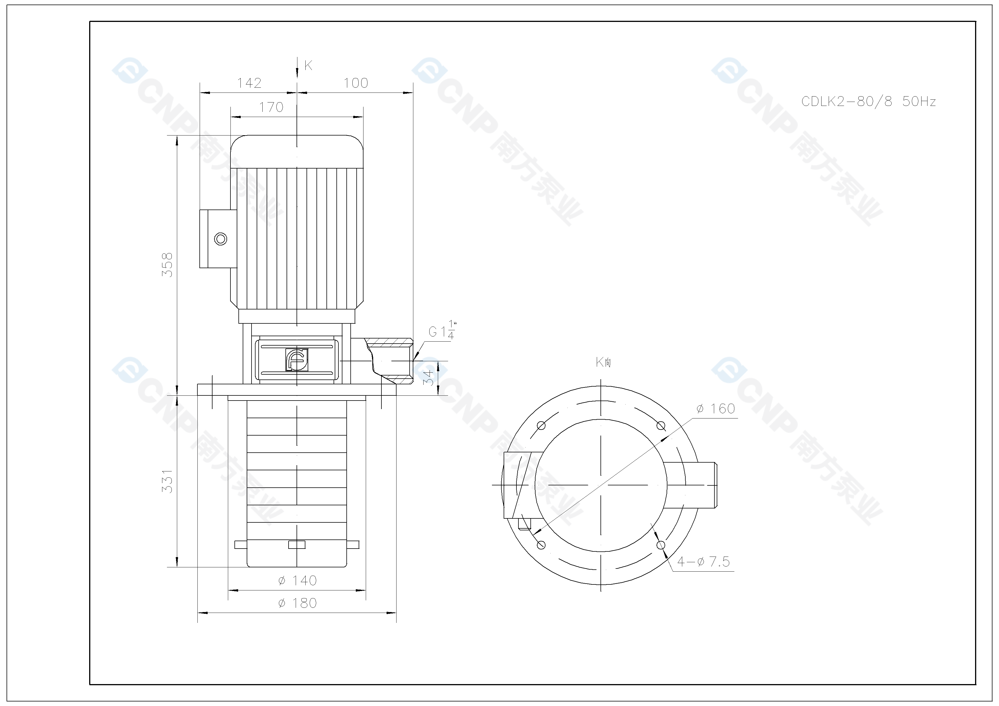 南方泵業CDLK2-80/8水泵明細參數