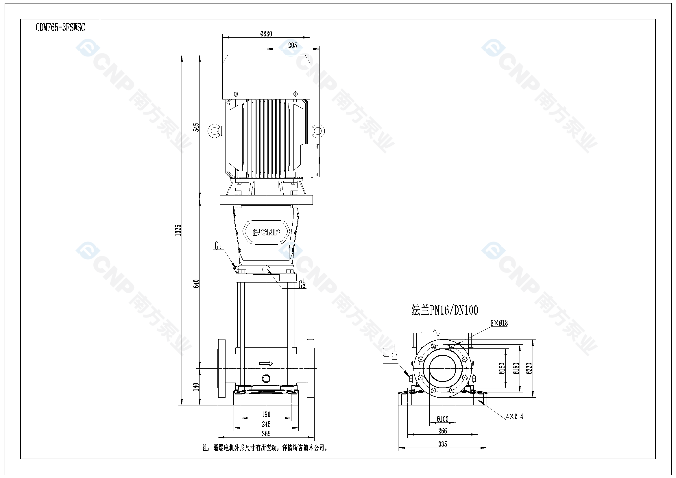 南方泵業CDM65-3水泵明細參數