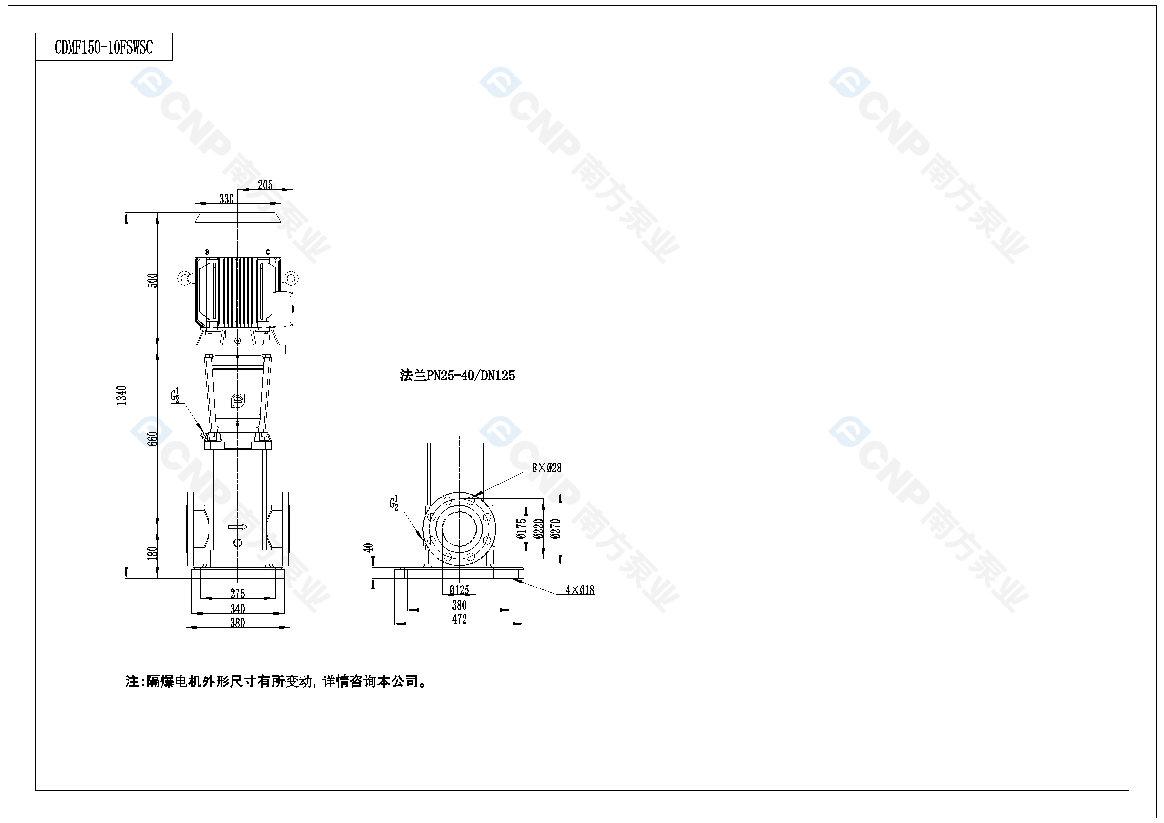 您的位置: 南方泵業 > 在線選型 > 多級泵 > CDM(F)(50Hz) > CDM150-1