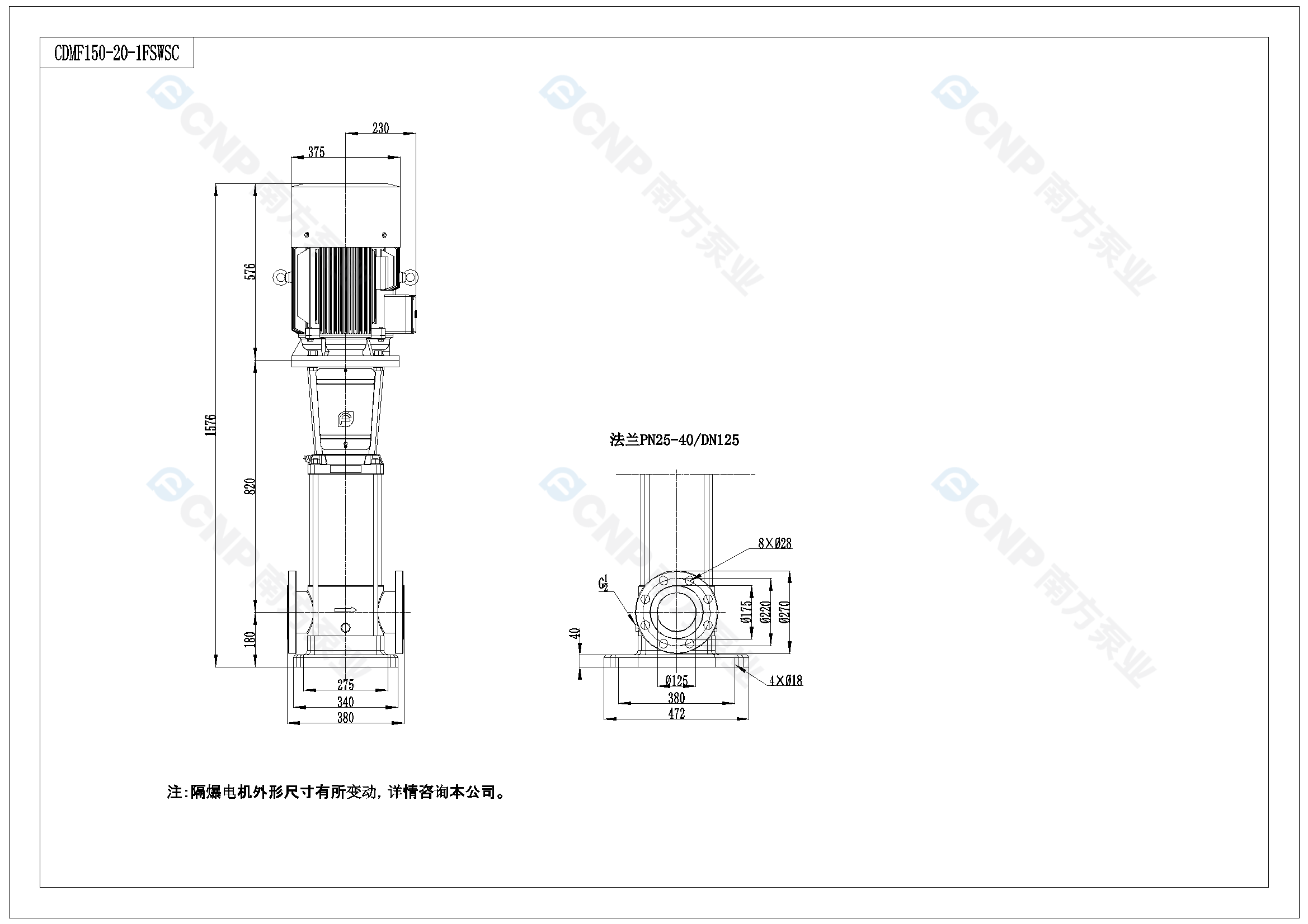 您的位置: 南方泵業 > 在線選型 > 多級泵 > CDM(F)(50Hz) > CDM150-2-1