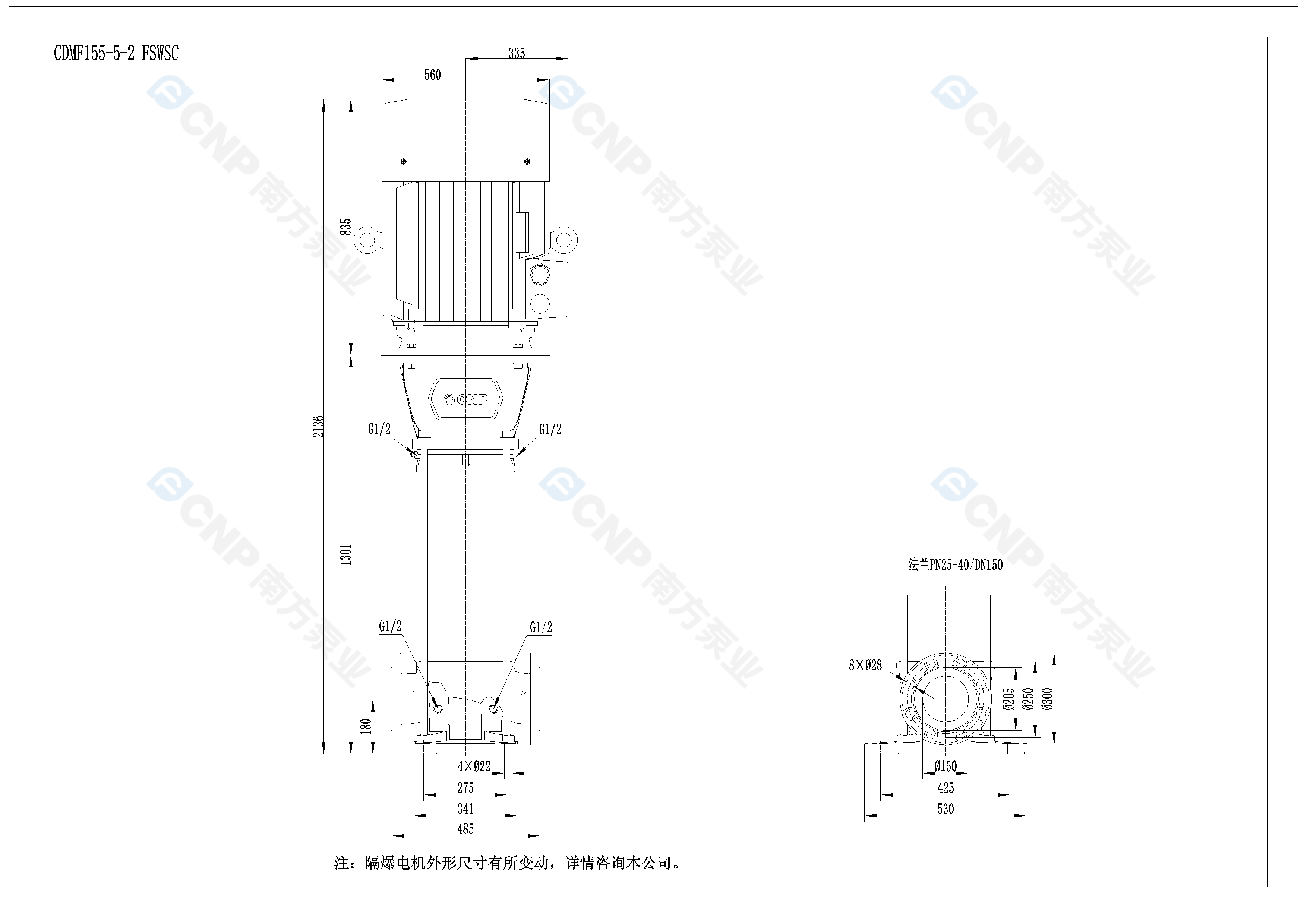 南方泵業CDM155-5-2水泵明細參數