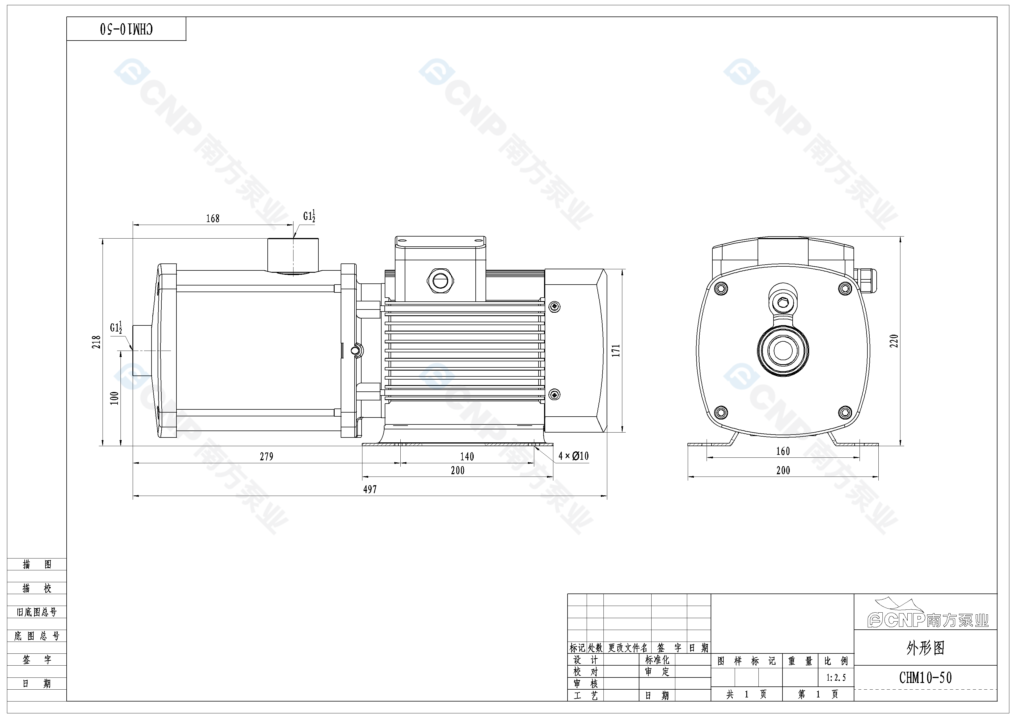 南方泵業CHM10-50水泵明細參數