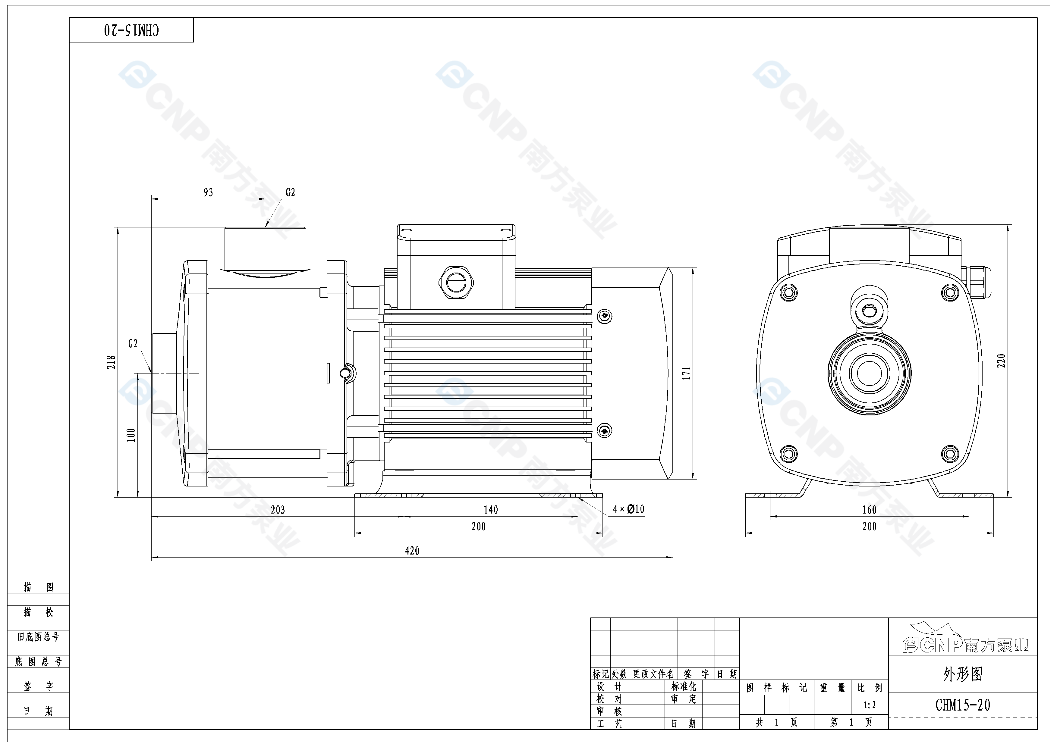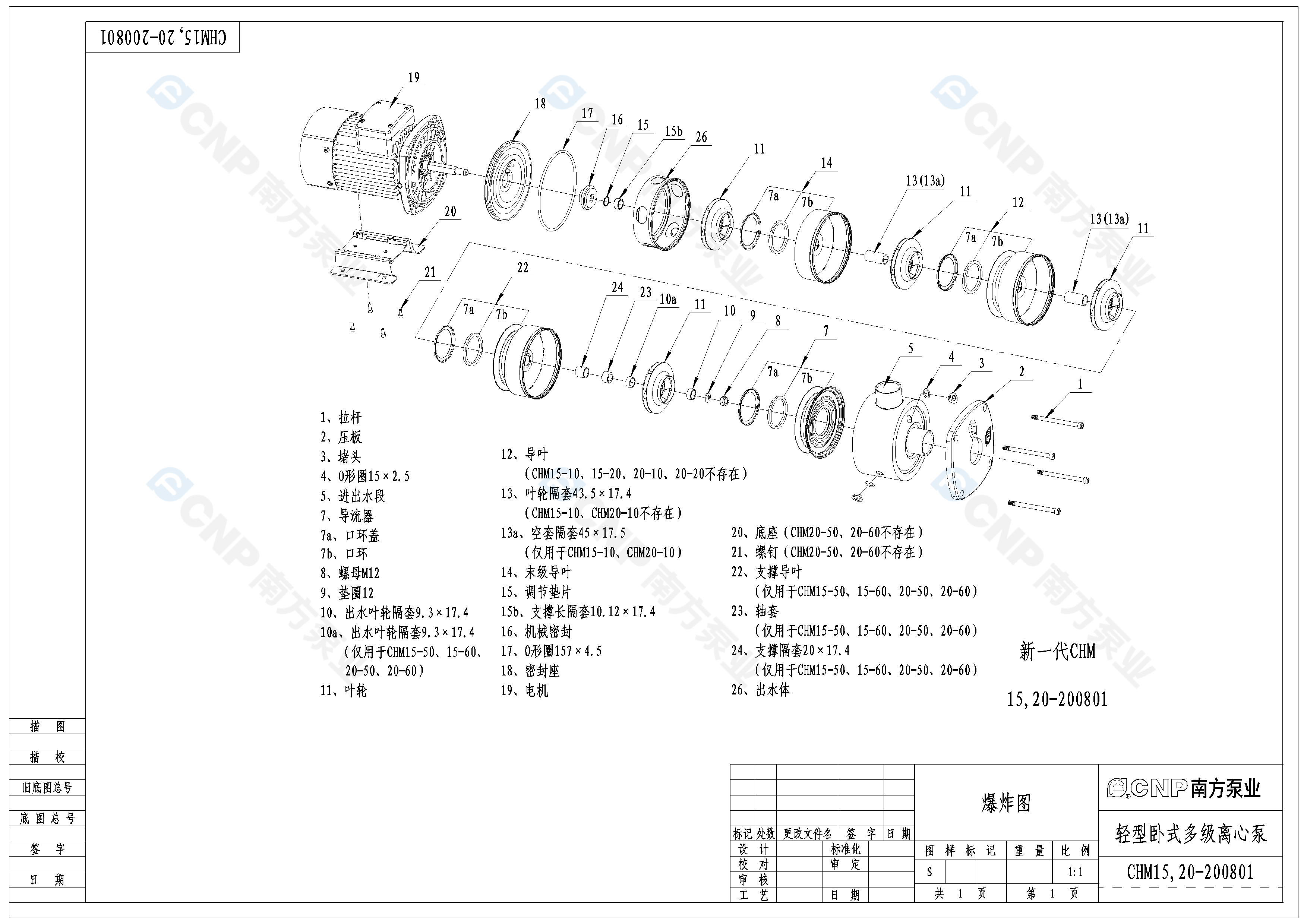 南方泵業CHM15-20水泵明細參數