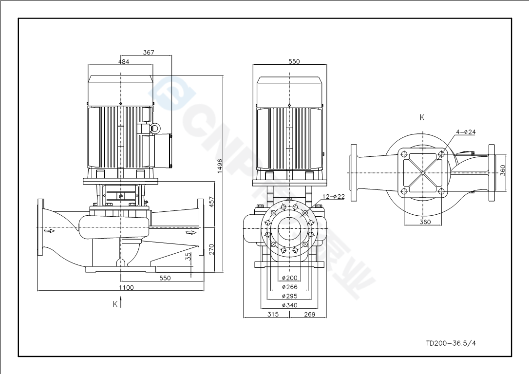 您的位置: 南方泵業 > 在線選型 > 管道泵 > TD(50Hz) > TD200-36.5/4
